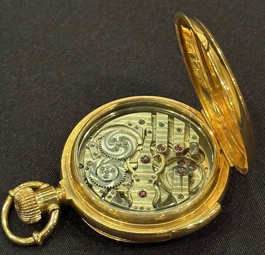The movement would represent the peak of 19th-century watchmaking. It would likely employ a high-grade nickel bridge-style movement. These calibres featured a precise lever escapement, ensuring accuracy and reliable timekeeping. High-end movements of this complexity typically incorporate at least 17 jewels to minimise friction. Typically, Jurgensen utilised white porcelain dials, frequently single-sunk, displaying legible Roman numerals and highly refined Breguet hands. The signature “J. Jurgensen” or “Jules Jurgensen” appears prominently on the dial and the movement.